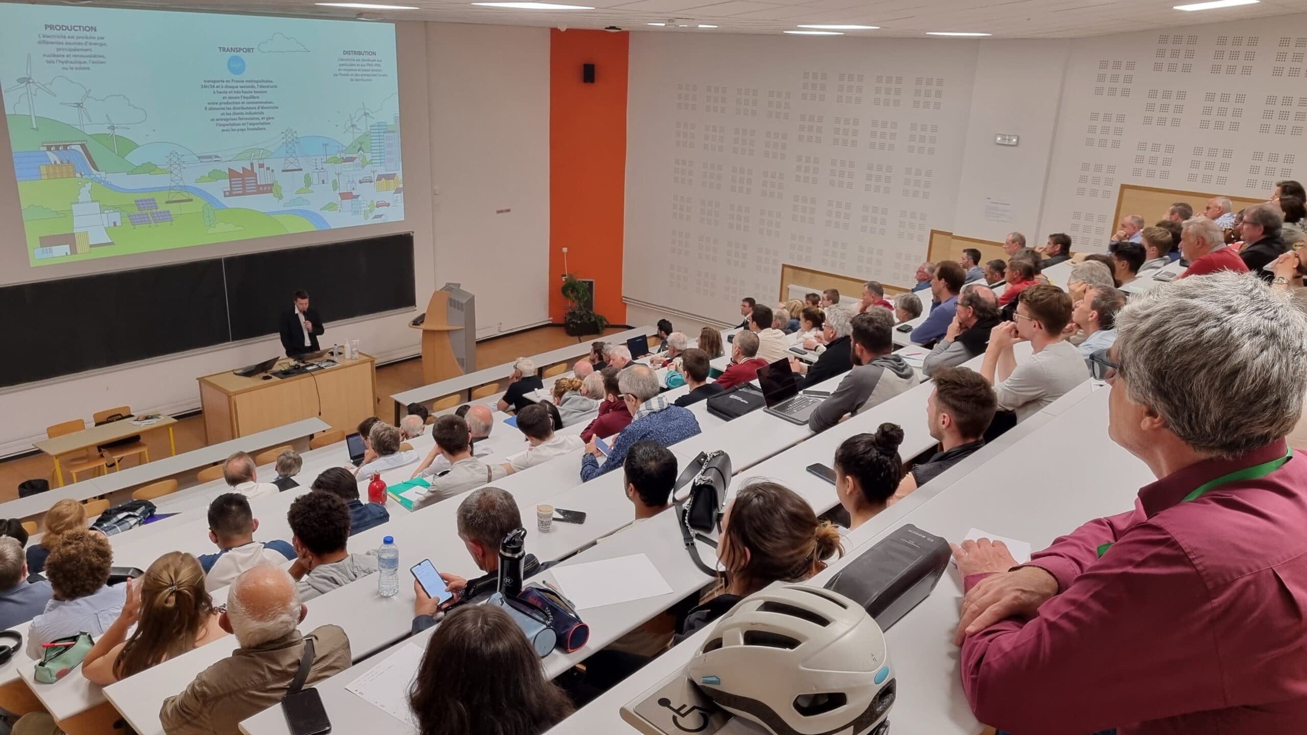 Après un accueil par le département Génie Electrique de l’INSA et une introduction par Patrick Leclerc, Président du Groupe Régional SEE Rhône Alpes Auvergne Lyon, l’étude a été présentée par Vincent BRIAT de la Délégation Auvergne-Rhône-Alpes de RTE et a contribué àla réussite de cette soirée consacrée aux scénarii du Futur énergétique 2050.